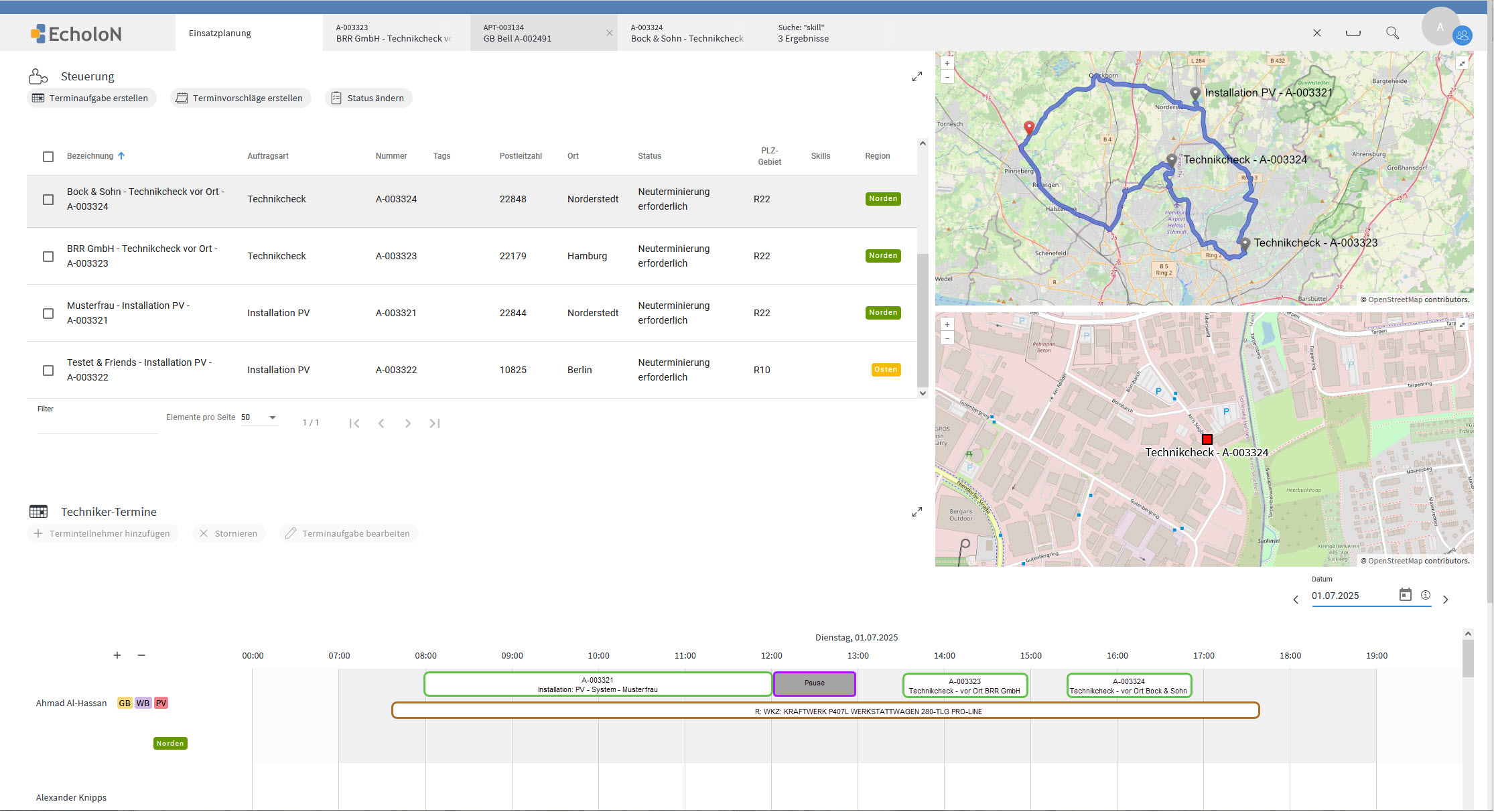 Klassische Tools bleiben bei der Wegstrecke stehen - EcholoN hingegen denkt weiter: vom Auftrag bis zur Rückmeldung. Damit wird Technikerdisposition zur strategischen Aufgabe, nicht zur operativen Belastung.